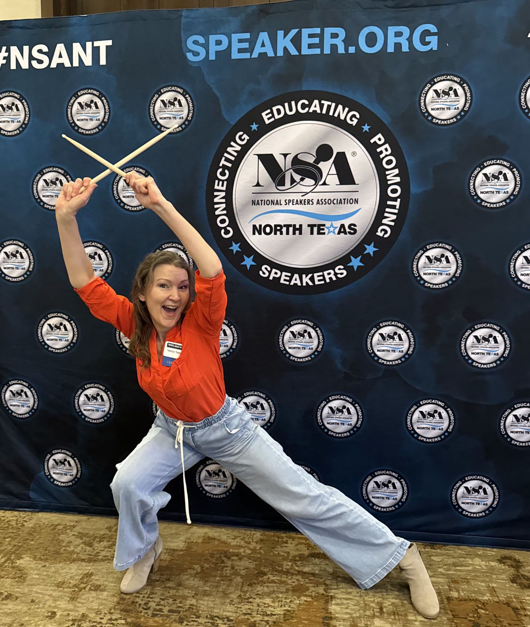 - * The Environment Charge (Utilizing what is right in front of you): Stop waiting for external motivation. Yesterday at the National Speakers Association North Texas meeting, we were given drumsticks for high-intensity cardio. We drummed and danced for two songs, and the energy in the room shifted instantly.
