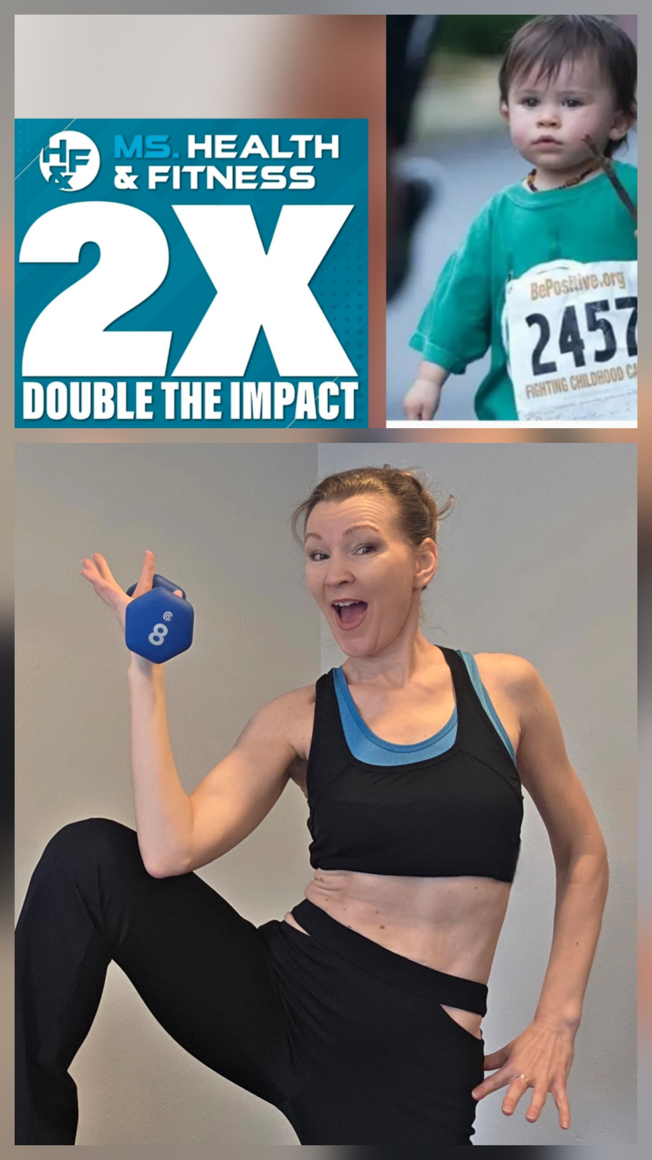 I’m trading my morning walk for a mission today. It is a Double Vote day in the Ms. Health & Fitness competition! Every dollar you donate to the B+ Foundation (helping kids with cancer) counts as TWO VOTES for me to move from #7 into the Top 5. You can double your impact for the kids and my mission right here: